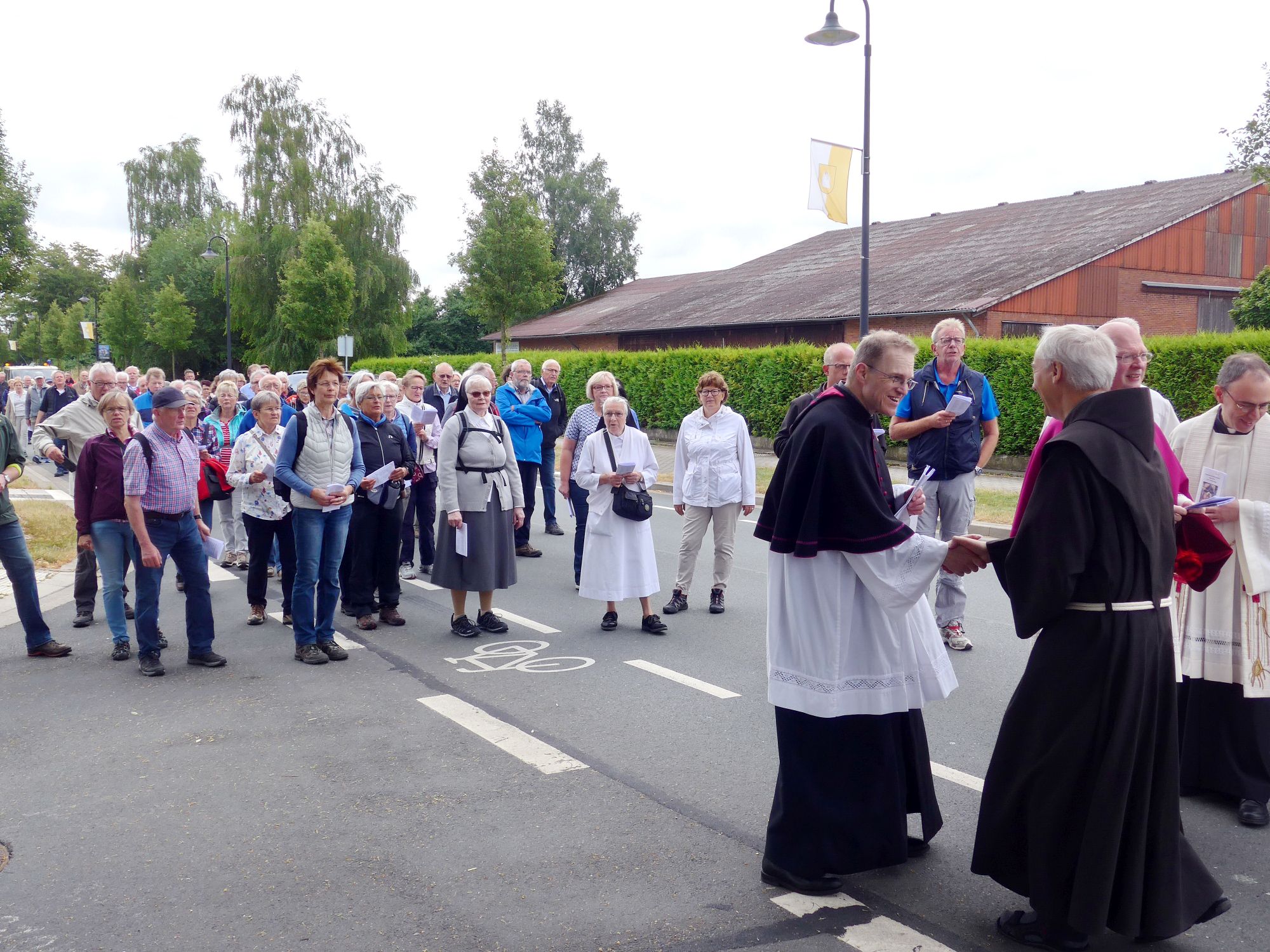[07.07.19] Traditionell machten sich bereits zum 256. Mal Pilgerinnen und Pilger auf den Weg vom Paderborner Dom zu unserer Gottesmutter nach Verne. Dort wurden sie feierlich am Ortseingang empfangen.