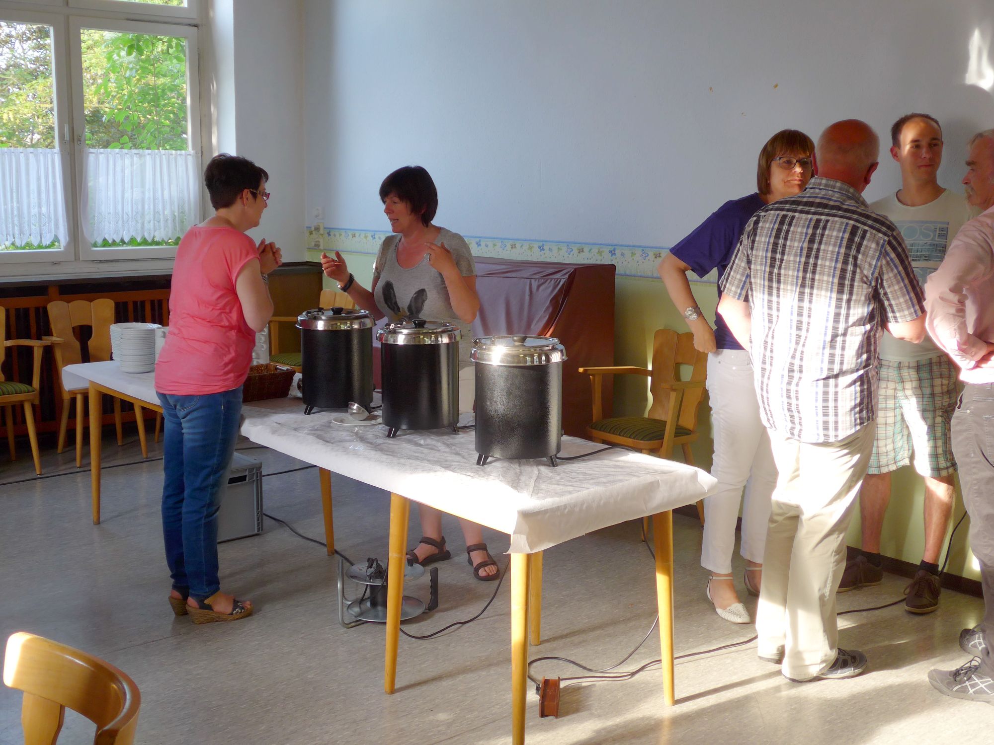 [17.06.2015] Der Pfarrgemeinderat hat an diesem Tag alle ehrenamtlichen Helfer der Kirche zu einer kleinen Runde mit Suppe, Getränken sowie netten Gesprächen ins Pfarrheim eingeladen.