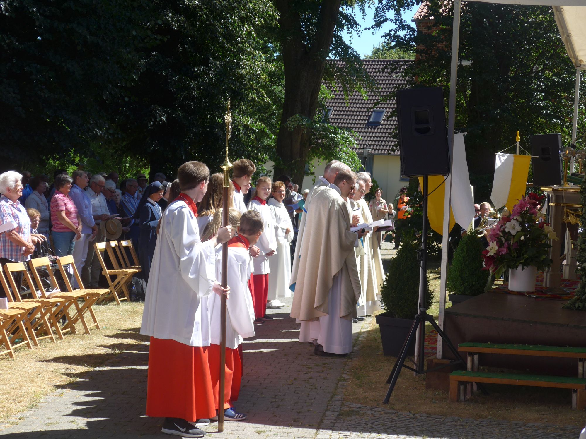 [01.07.2018] Auch in diesem Jahr haben wir bei herrlichem Wetter die Paderborner Stadtprozession nach Verne am Drei-Hochwürden-Stein abgeholt.