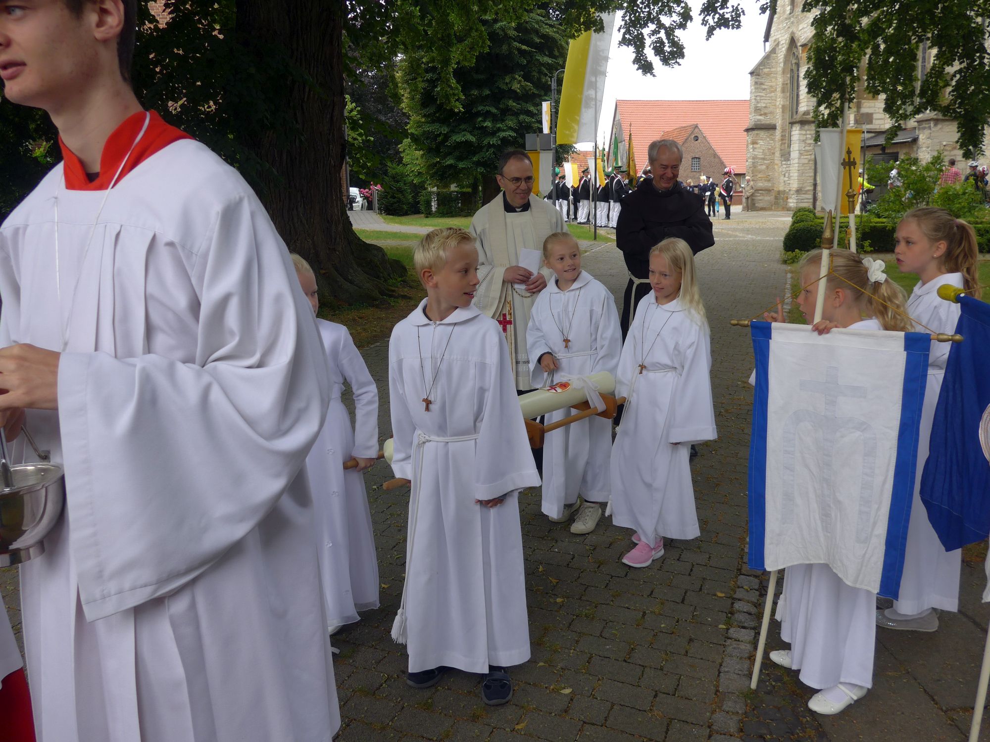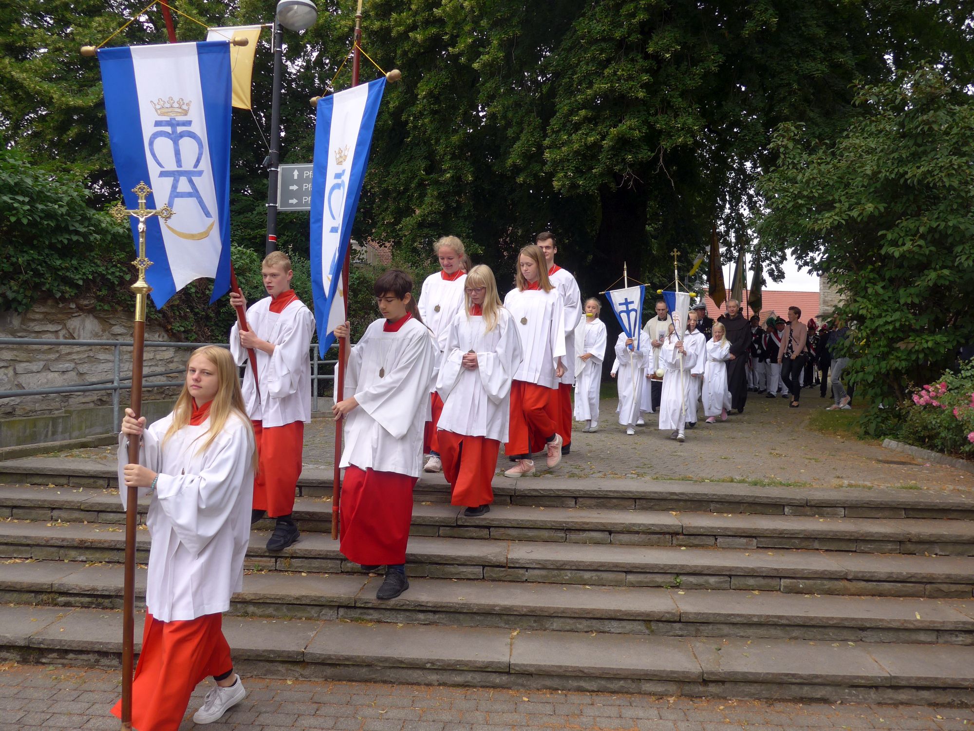 [07.07.19] Traditionell machten sich bereits zum 256. Mal Pilgerinnen und Pilger auf den Weg vom Paderborner Dom zu unserer Gottesmutter nach Verne. Dort wurden sie feierlich am Ortseingang empfangen.