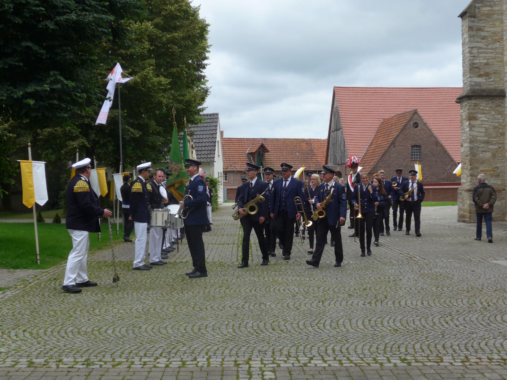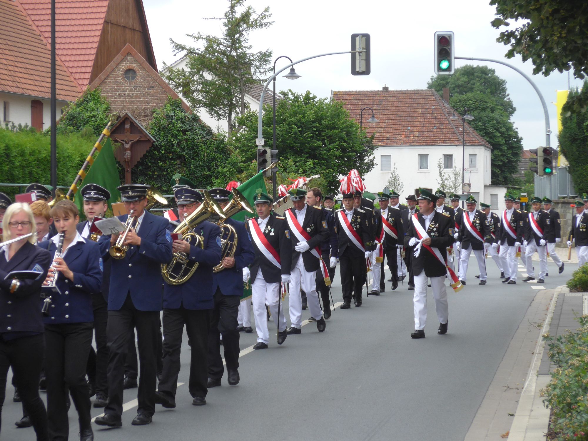 [03.07.16] Wie traditionell in jedem Jahr am ersten Julisonntag haben wir auch in diesem Jahr die nun 253. Paderborner Stadtprozession vom Paderborner Dom nach Verne an dem Drei-Hoch-Würden Stein in Verne abgeholt. Im Anschluss folgte die Abschlussmesse hinter der Pfarrkirche mit musikalischer Begleitung des Musikvereins "Frohsinn" Verne.