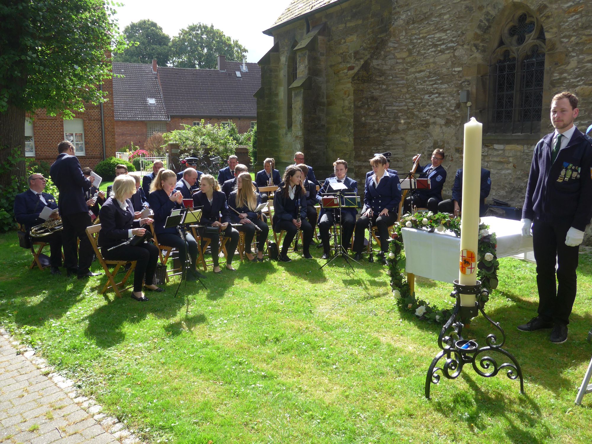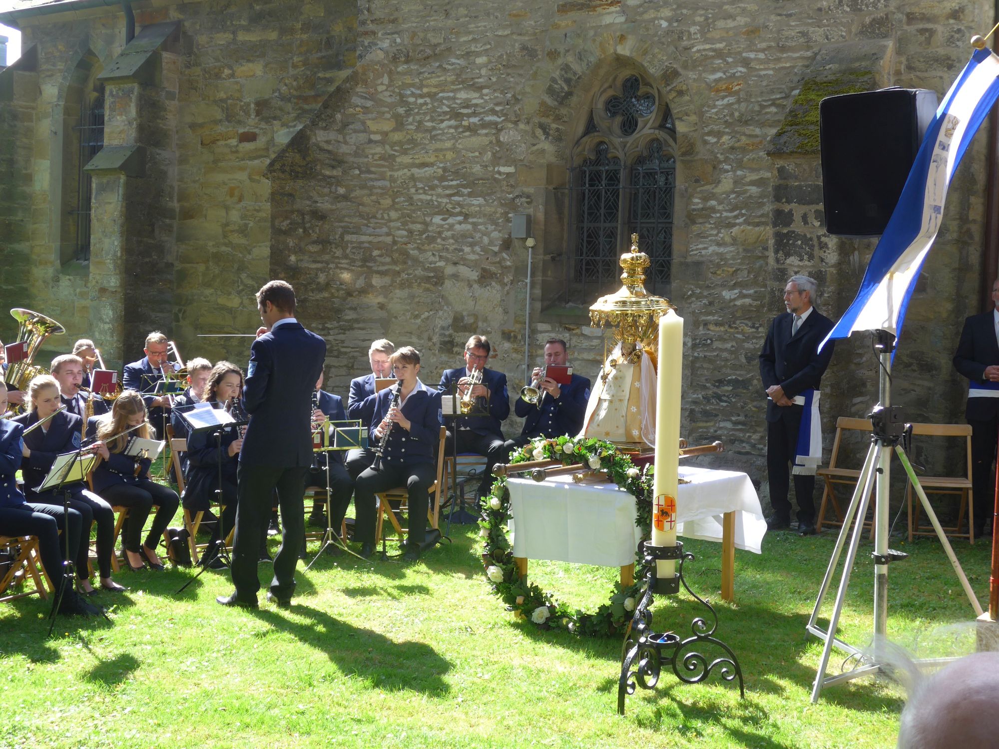 [03.07.16] Wie traditionell in jedem Jahr am ersten Julisonntag haben wir auch in diesem Jahr die nun 253. Paderborner Stadtprozession vom Paderborner Dom nach Verne an dem Drei-Hoch-Würden Stein in Verne abgeholt. Im Anschluss folgte die Abschlussmesse hinter der Pfarrkirche mit musikalischer Begleitung des Musikvereins "Frohsinn" Verne.